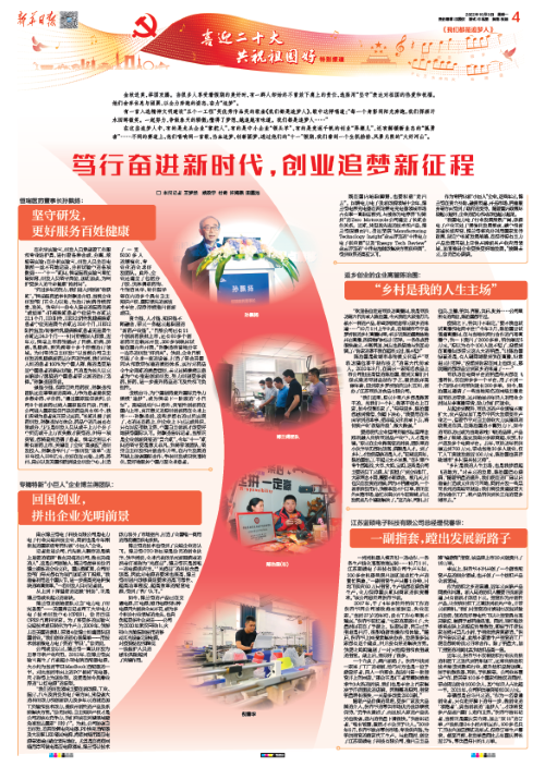 10月3日,新华日报“喜迎二十大 共祝祖国好”特别报道刊发《笃行奋进新时代,创业追梦新征程》,重点关注DB真人医药等企业的发展成果和奋斗愿景,并采访了DB真人医药董事长孙飘扬。现将相关内容选登。